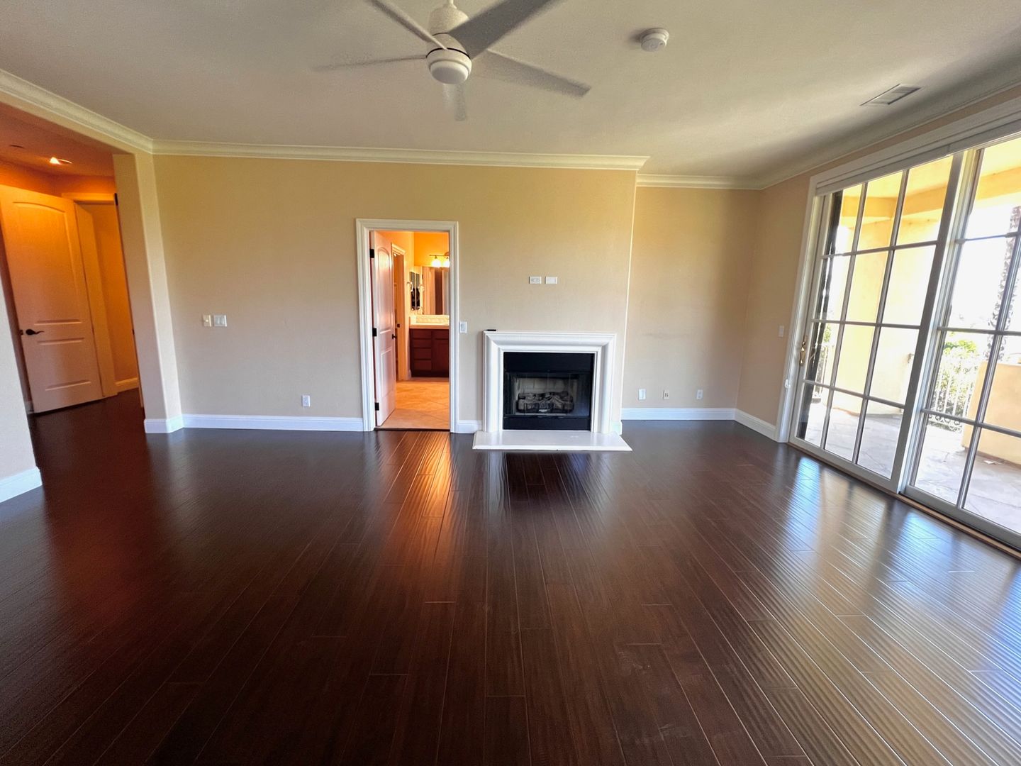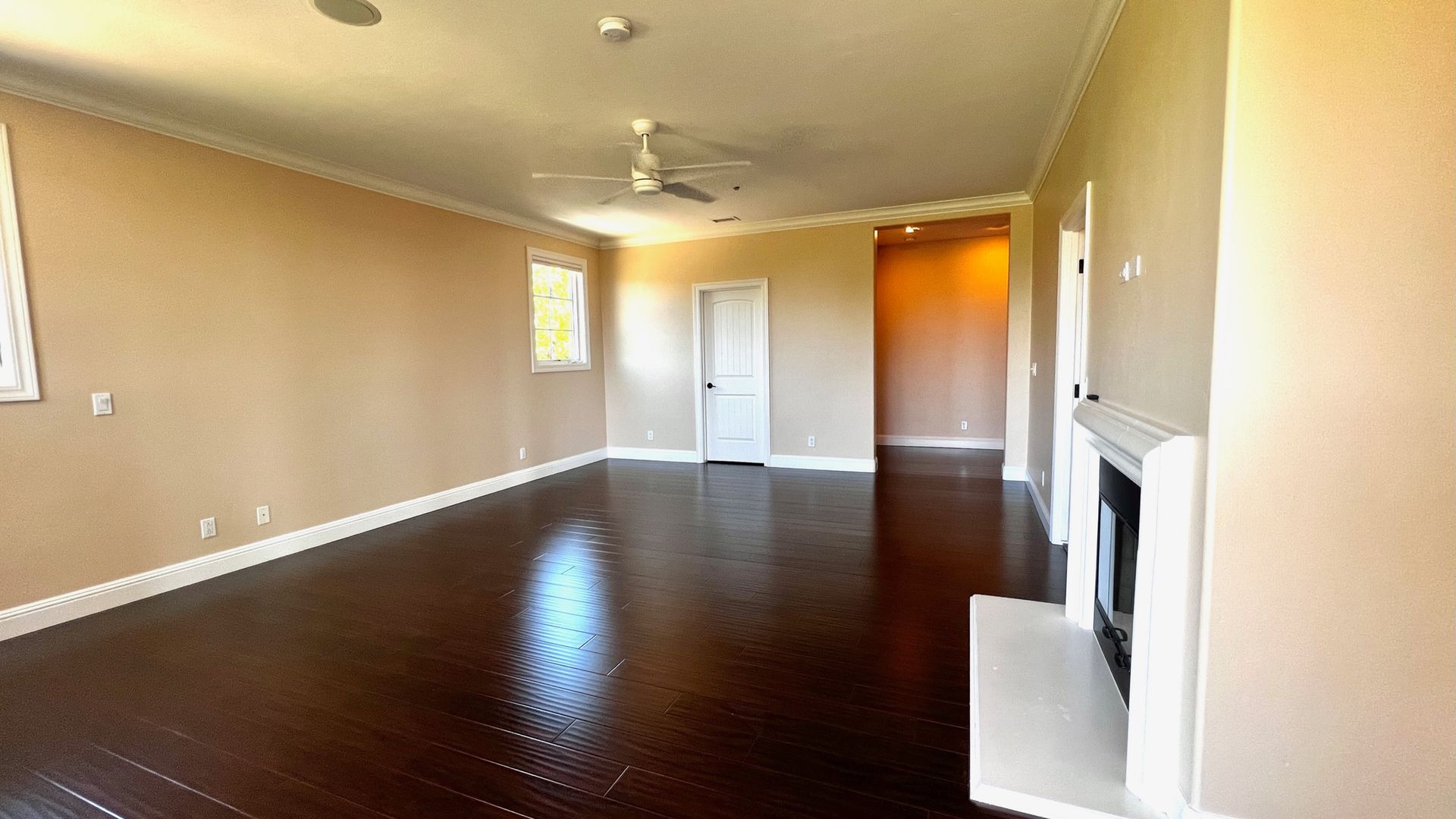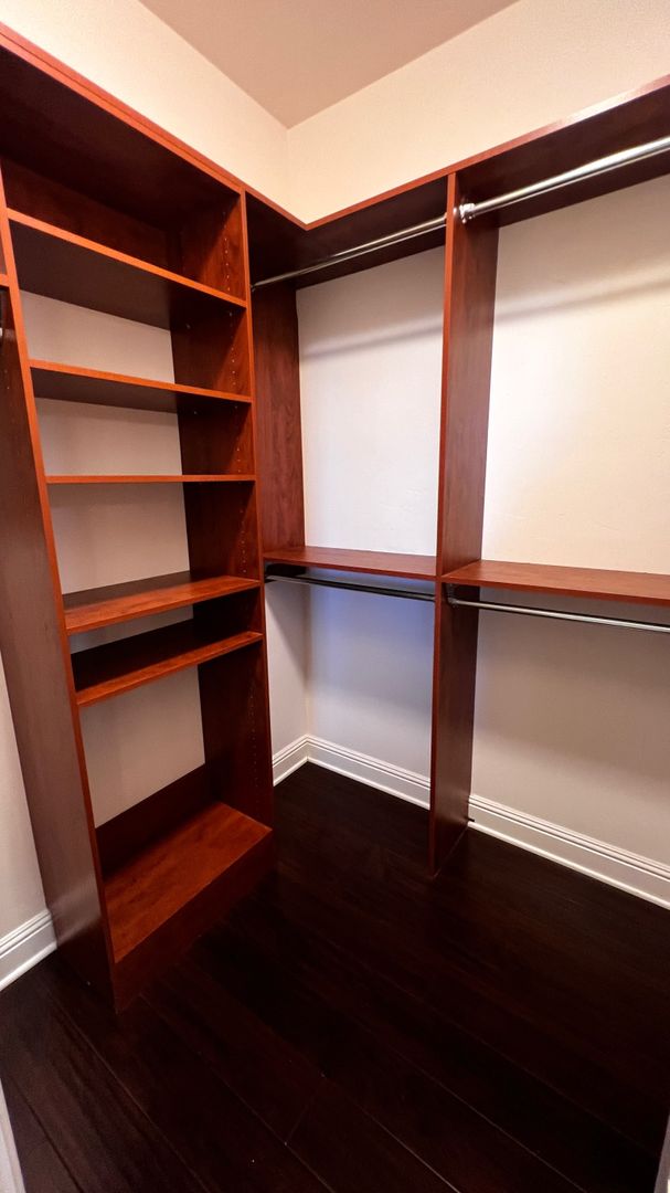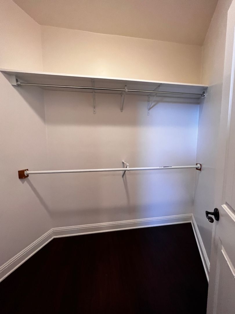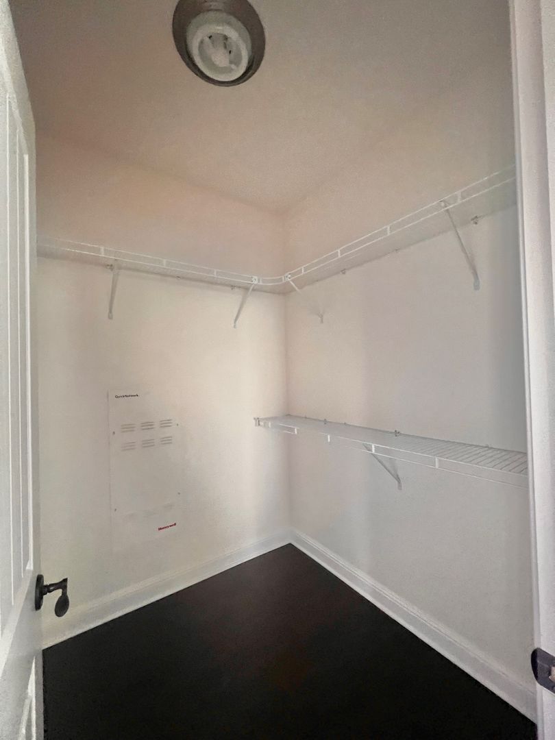 Main bedroom with fireplace and generous closet space